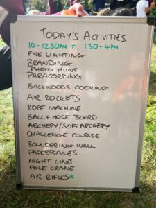 The camp wrapped up on the Sunday with various team challenge games and races, including welly-throwing, egg and spoon race, and football and hockey skills, but not before an end-of-camp October barbeque. Fortunately the weather held out for that one.