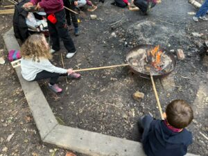 After a well-earned hearty dinner of pasta bolognese and apple pie and custard, the evening moved to the camp fire for songs and marshmallows. Section Leaders led the whole group with some very vociferous singing, proving they bring not only practical skills to the Group, but inherent talent!